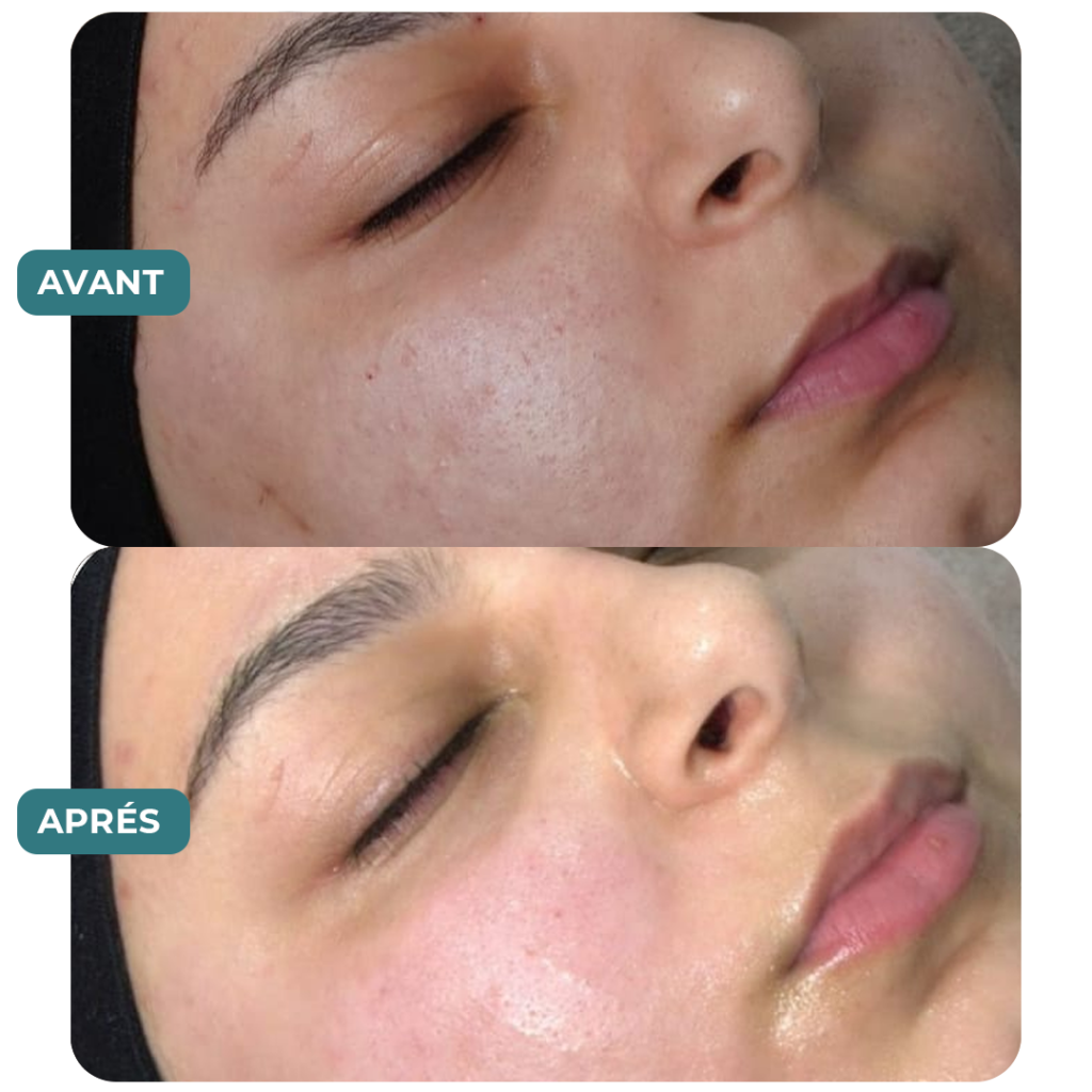 Je testais produit après produit sans résultat. Après la séance HydraFacial, mes pores étaient visiblement plus nets et je suis repartie avec un plan clair. Enfin.